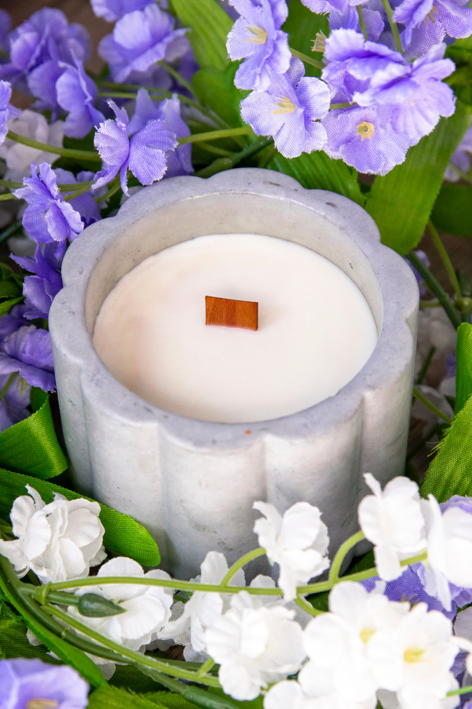 Each concrete jar is handmade by us. They are unique and one-of-a-kind. The concrete jars are sealed with a non-toxic, water-based protective sealant to prevent seepage of the wax and fragrance oil.