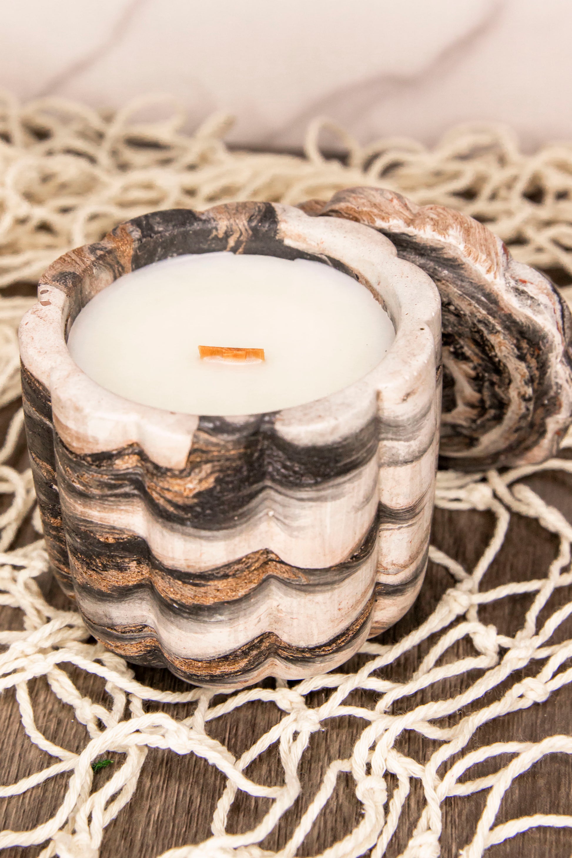 Our candles are made with coconut apricot wax featuring a wood wick. The wax is 100% biodegradable, toxin free, paraben free, phthalate free, and vegan.
