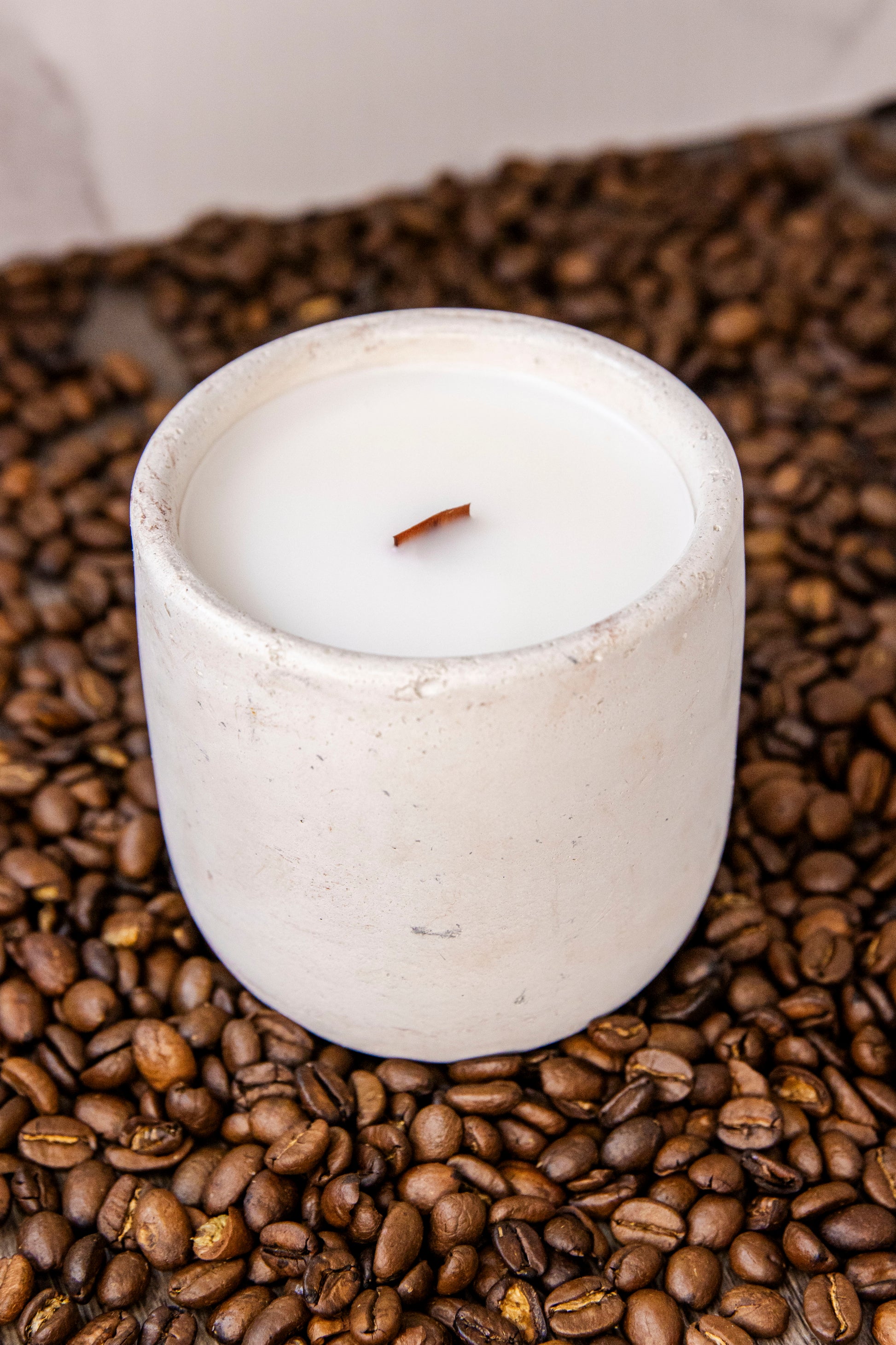Each concrete jar is handmade by us. They are unique and one-of-a-kind. The concrete jars are sealed with a non-toxic, water-based protective sealant to prevent seepage of the wax and fragrance oil.