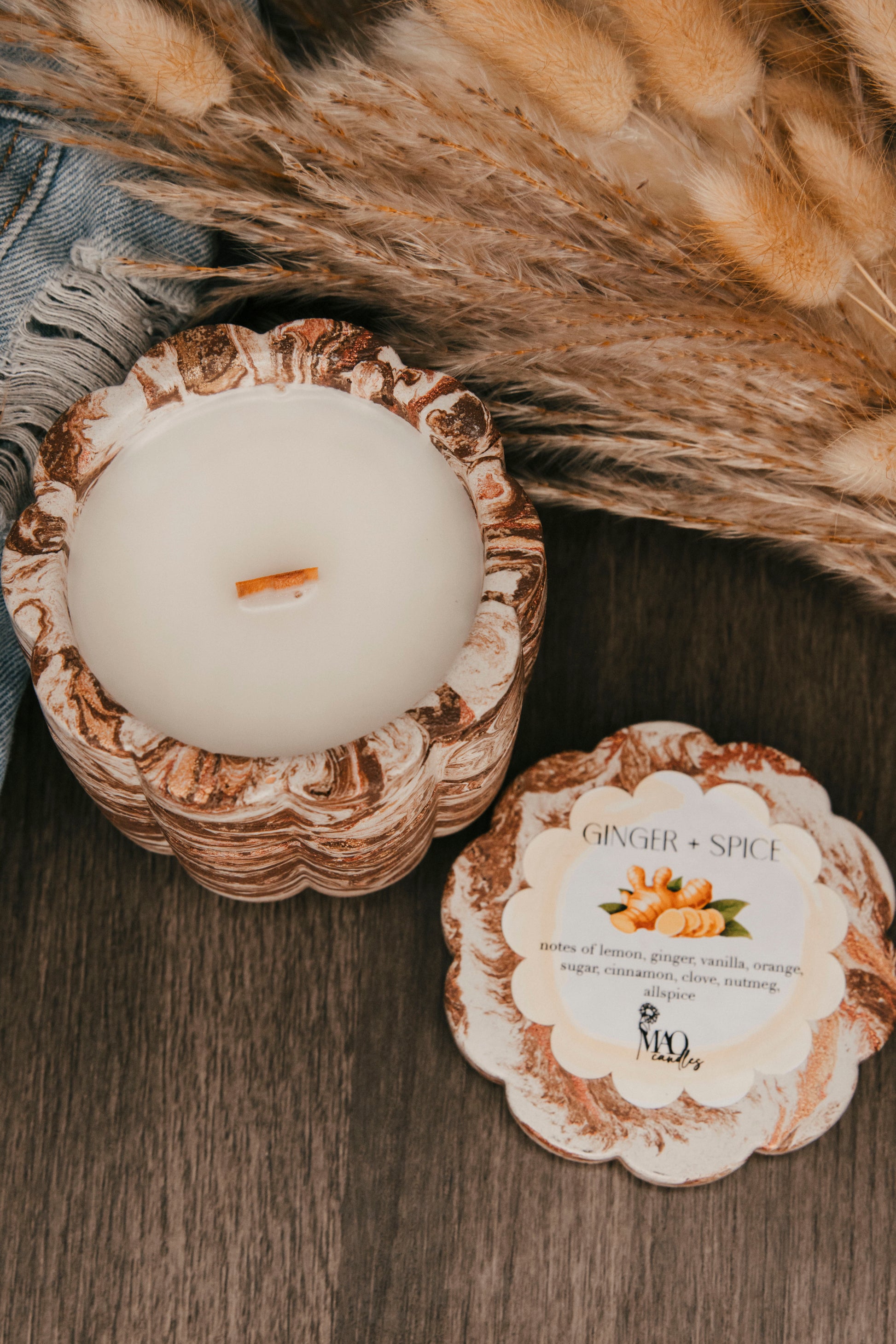 Our candles are made with coconut apricot wax featuring a wood wick. The wax is 100% biodegradable, toxin free, paraben free, phthalate free, and vegan.