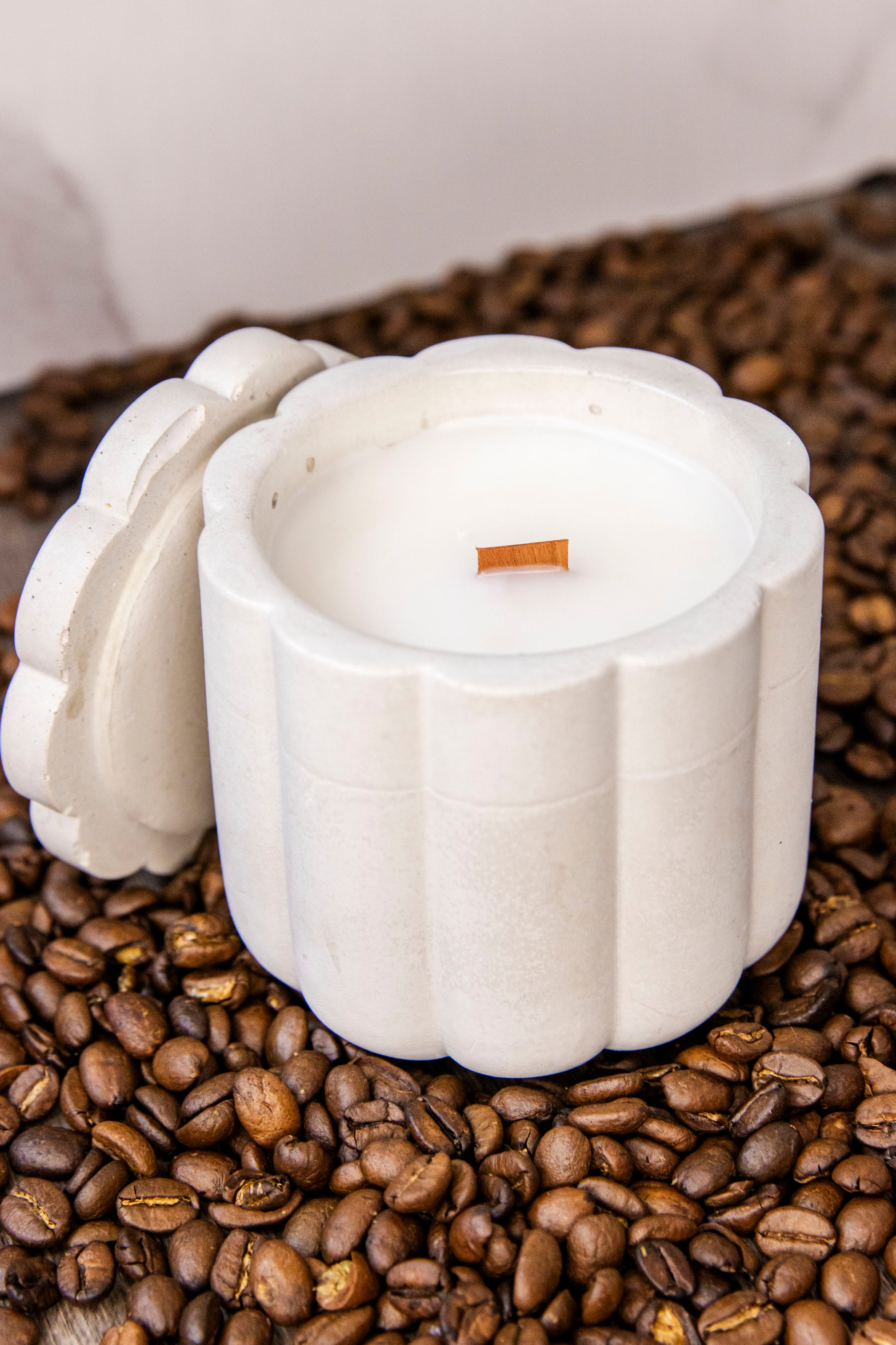 Each concrete jar is handmade by us. They are unique and one-of-a-kind. The concrete jars are sealed with a non-toxic, water-based protective sealant to prevent seepage of the wax and fragrance oil.