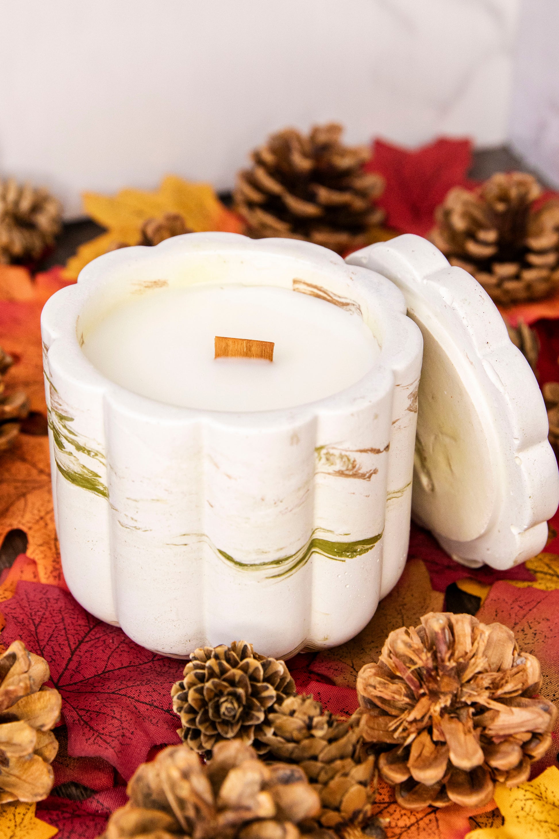 Each concrete jar is handmade by us. They are unique and one-of-a-kind. The concrete jars are sealed with a non-toxic, water-based protective sealant to prevent seepage of the wax and fragrance oil.