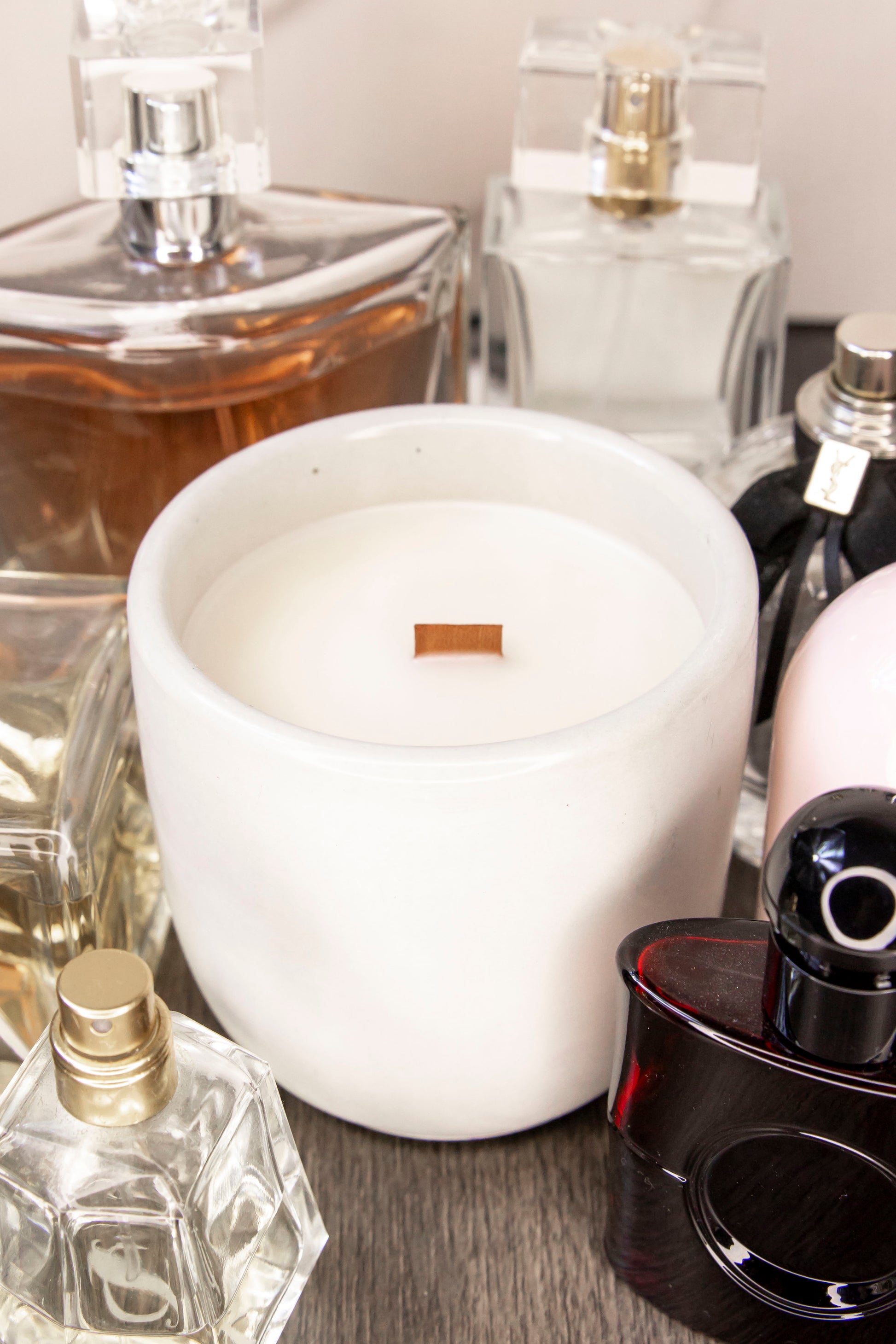 Each concrete jar is handmade by us. They are unique and one-of-a-kind. The concrete jars are sealed with a non-toxic, water-based protective sealant to prevent seepage of the wax and fragrance oil.