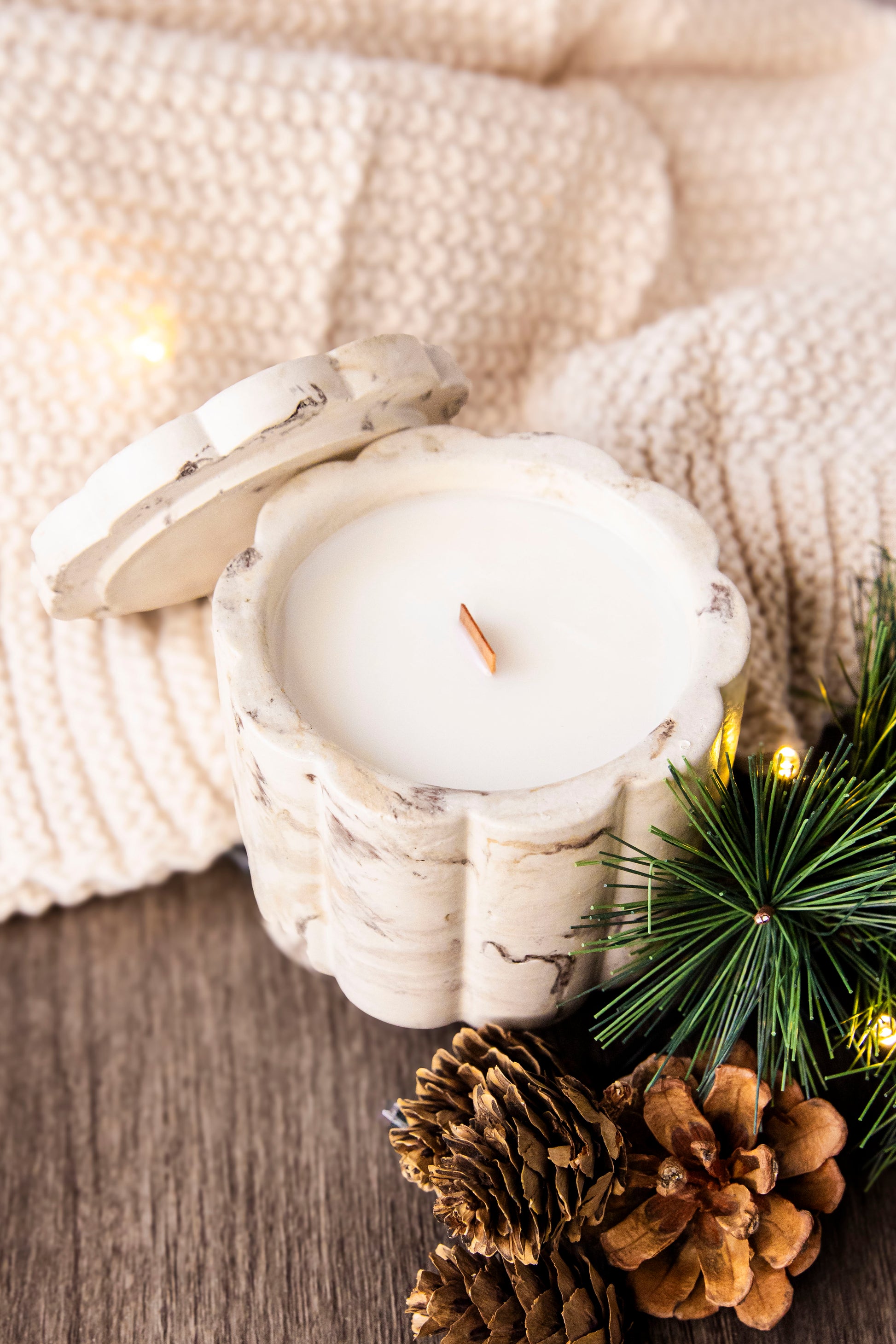 Our candles are made with coconut apricot wax featuring a wood wick. The wax is 100% biodegradable, toxin free, paraben free, phthalate free, and vegan.