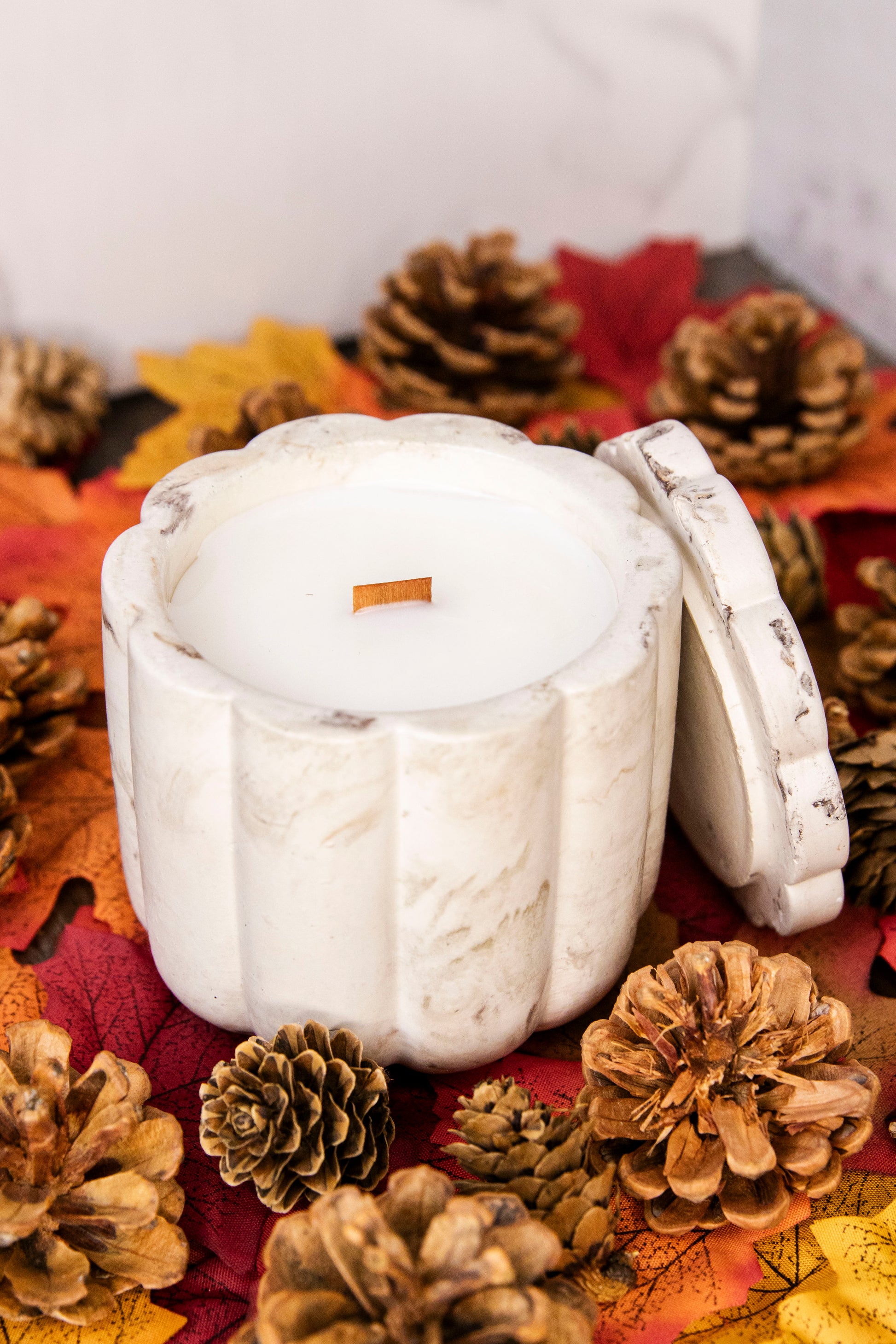 Each concrete jar is handmade by us. They are unique and one-of-a-kind. The concrete jars are sealed with a non-toxic, water-based protective sealant to prevent seepage of the wax and fragrance oil.