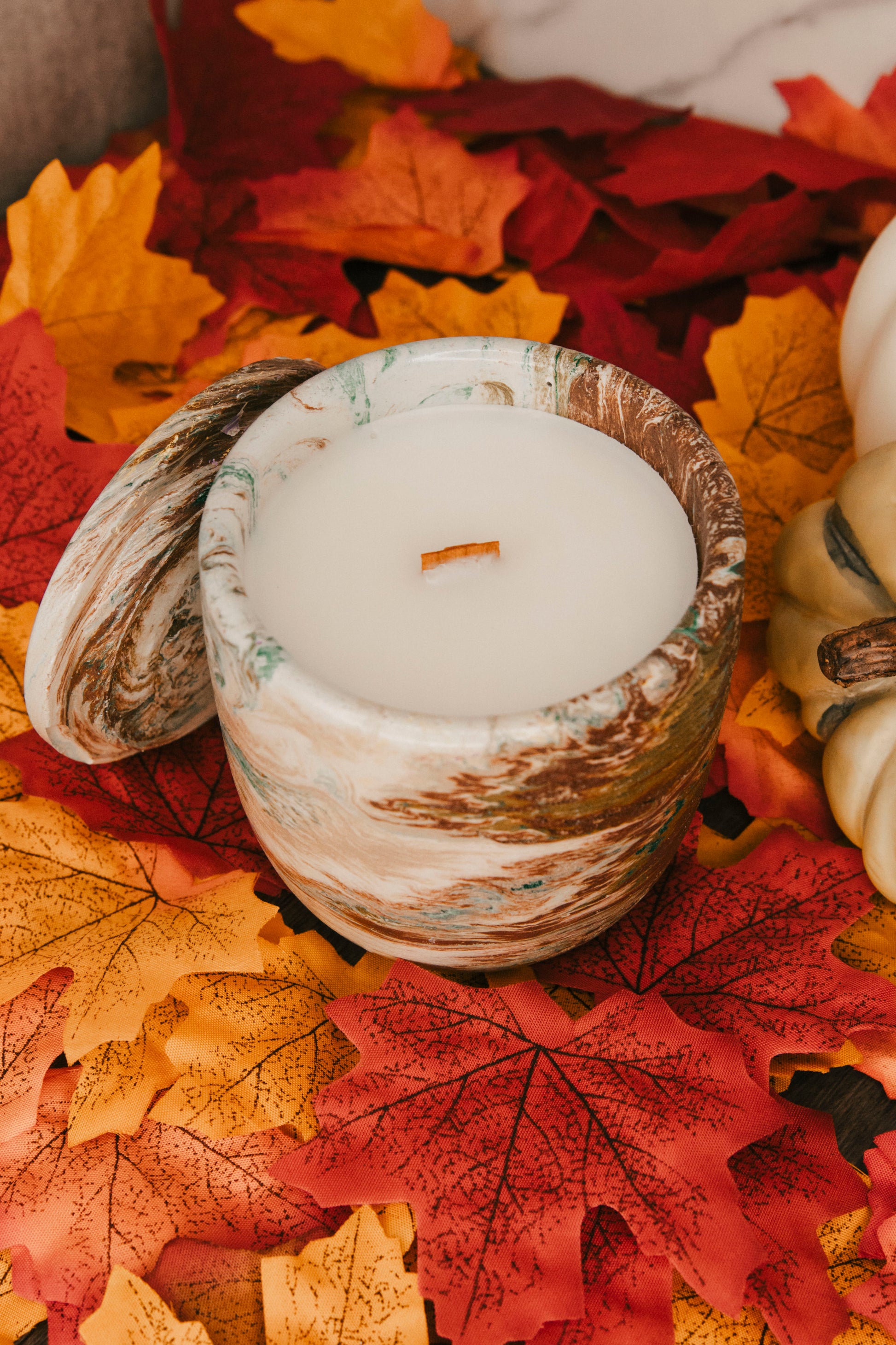 Our candles are made with coconut apricot wax featuring a wood wick. The wax is 100% biodegradable, toxin free, paraben free, phthalate free, and vegan.